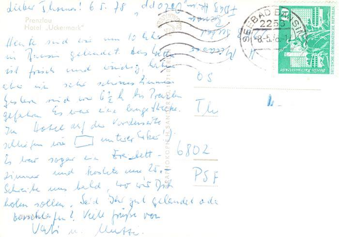 73883561 alte Postkarte Prenzlau Hotel Uckermark postalisch gelaufen Erhaltung siehe scans [WerneD78] KatCode: 11110012073452
