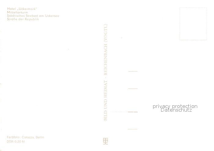 73249084 Prenzlau Hotel Uckermark Mitteltorturm Seebad am Uckersee Strasse der Republik postalisch nicht gelaufen Erhaltung siehe scans [FriedD77] KatCode: 11110012073452