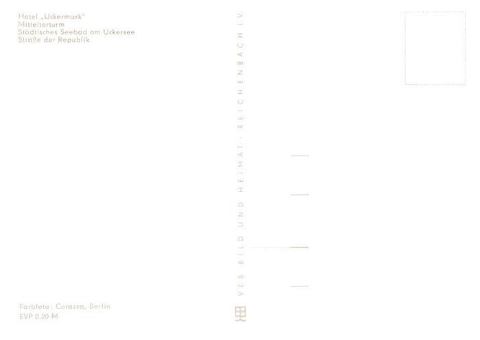 73876126 Prenzlau Hotel Uckermark Mitteltorturm Staedt Seebad am Uckersee Strasse der Republik postalisch nicht gelaufen Erhaltung siehe scans [WerneD78] KatCode: 11110012073452