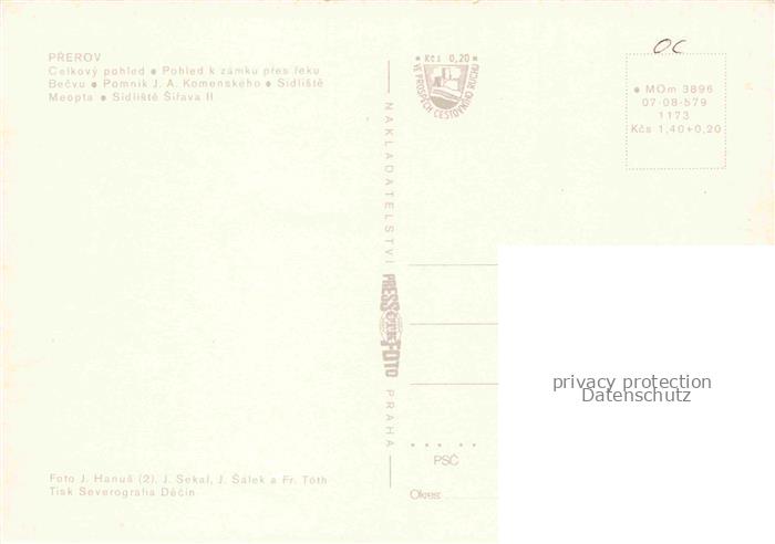 74156905 Prerov Olomouc Prerau Olmuetz CZ Stadtpanorama Schloss Bečva-Fluss Pomník-J-A-Komenského Sídliště Plattenbau Meopta postalisch nicht gelaufen Erhaltung siehe scans [Karloger] KatCode: 11520
