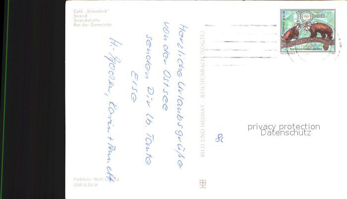 72586774 alte Postkarte Prerow Ostseebad Cafe Strandeck Strand Strasse Rat der Gemeinde postalisch gelaufen Erhaltung siehe scans [WerneD78] KatCode: 11110013057068