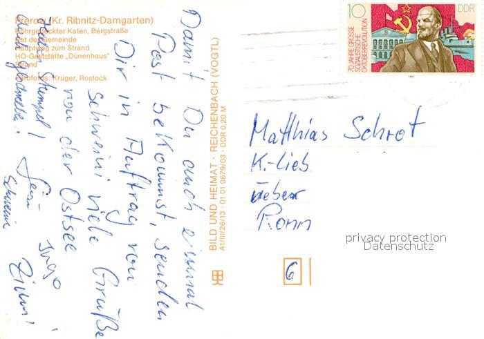 72960031 alte Postkarte Prerow Ostseebad Friesenkaten Rat der Gemeinde Hauptweg zum Strand HOG Gaststaette Duenenhaus Strand postalisch gelaufen Erhaltung siehe scans [WerneD78] KatCode: 11110013057068