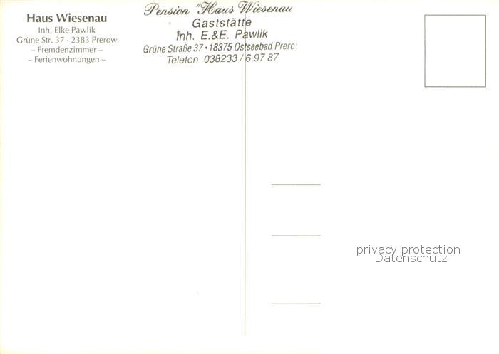 73783785 Prerow Ostseebad Haus Wiesenau Pension Gaststaette postalisch nicht gelaufen Erhaltung siehe scans [FriedD77] KatCode: 11110013057068