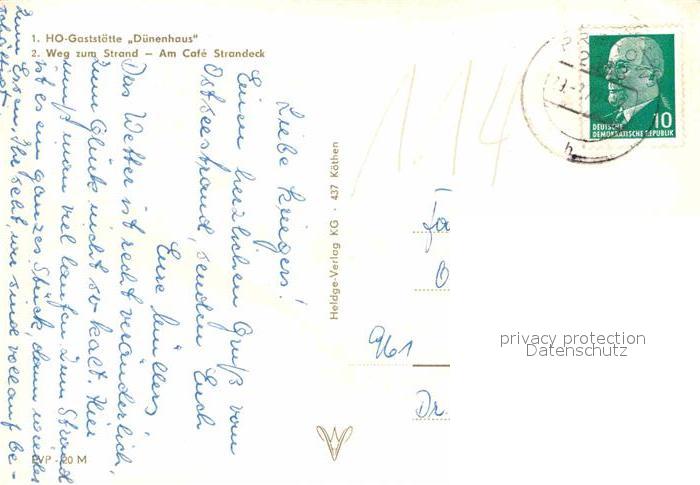 72727519 alte Postkarte Prerow Ostseebad HO Gaststaette Duenenhaus Cafe Strandeck Strand postalisch gelaufen Erhaltung siehe scans [FriedD77] KatCode: 11110013057068