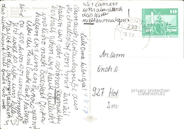 72424093 alte Postkarte Prerow Ostseebad HOG Duenenhaus Strand Zeltplatz Einkaufszentrum postalisch gelaufen Erhaltung siehe scans KatCode: 11110013057068