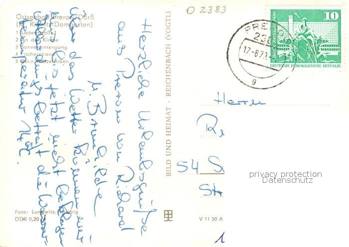 72941243 alte Postkarte Prerow Ostseebad Landestrasse Kirche Fischerstrand postalisch gelaufen Erhaltung siehe scans [NatalD47] KatCode: 11110013057068