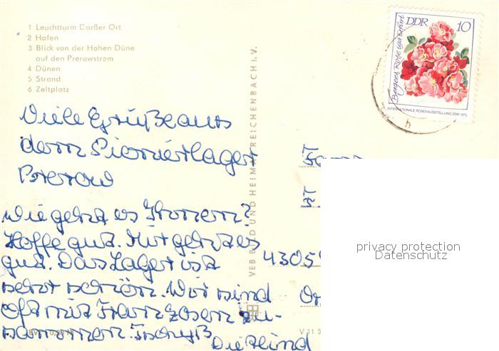 73103139 alte Postkarte Prerow Ostseebad Leuchtturm Bootshafen Strand Duenen Zeltplatz postalisch gelaufen Erhaltung siehe scans [KathaD81] KatCode: 11110013057068