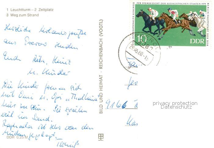 73045289 alte Postkarte Prerow Ostseebad Leuchtturm Zeltplatz Weg zum Strand postalisch gelaufen Erhaltung siehe scans [WerneD78] KatCode: 11110013057068