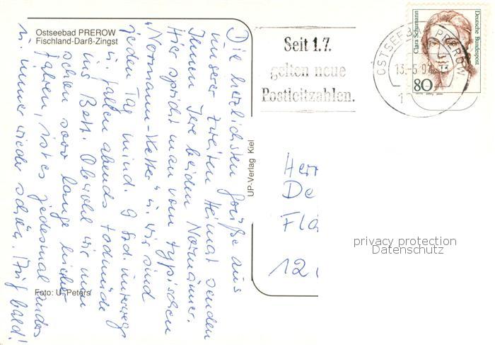 73754509 alte Postkarte Prerow Ostseebad Panorama Fischland Darss Zingst Fliegeraufnahme Kirche Wohnhaeuser Reetdach postalisch gelaufen Erhaltung siehe scans [FriedD77] KatCode: 11110013057068