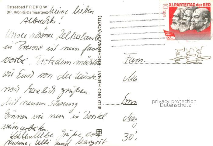 73044905 alte Postkarte Prerow Ostseebad Panorama Strand Kirche Fischkutter postalisch gelaufen Erhaltung siehe scans [WerneD78] KatCode: 11110013057068