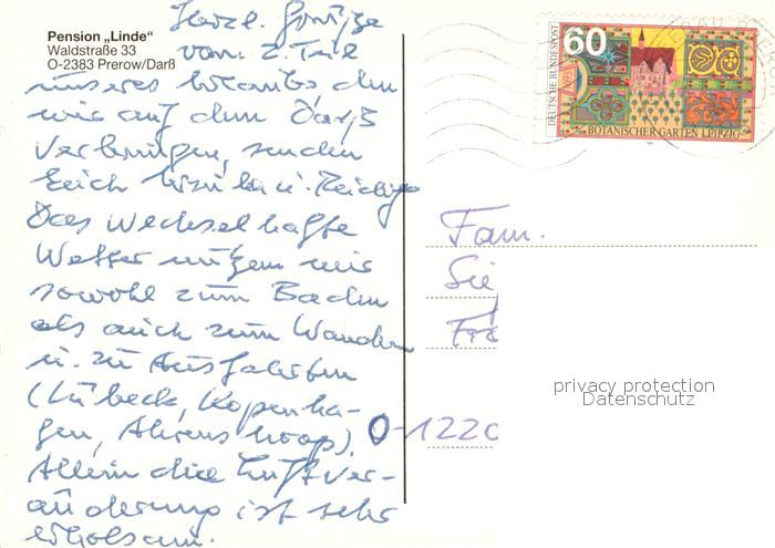 73650898 alte Postkarte Prerow Ostseebad Pension Linde postalisch gelaufen Erhaltung siehe scans [WerneD78] KatCode: 11110013057068