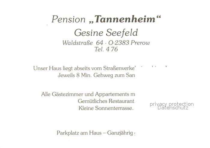 73099077 Prerow Ostseebad Pension Tannenheim postalisch nicht gelaufen Werbekarte (keine Postkarte) Erhaltung siehe scans [KathaD81] KatCode: 11110013057068