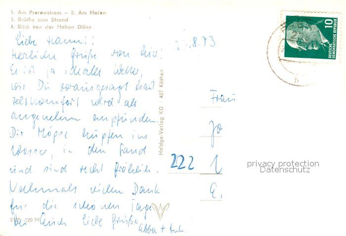 73101969 alte Postkarte Prerow Ostseebad Prerowstrom Hafen Bruecke Strand Hohe Duene postalisch gelaufen Erhaltung siehe scans [KathaD81] KatCode: 11110013057068