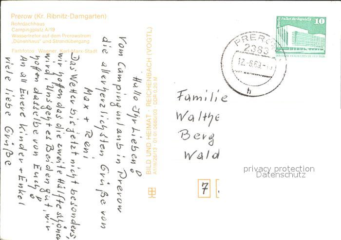 72458844 alte Postkarte Prerow Ostseebad Rohrdachhaus Campingplatz Tretboot Prerowstrom Duenenhaus postalisch gelaufen Erhaltung siehe scans KatCode: 11110013057068