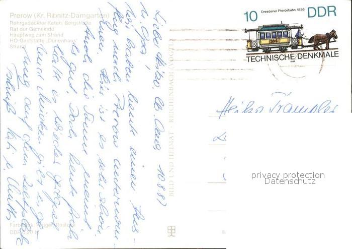 72136069 alte Postkarte Prerow Ostseebad Rohrgedeckter Katen Rat der Gemeinde Strandweg HO Gaststaette Duenenhaus postalisch gelaufen Erhaltung siehe scans KatCode: 11110013057068