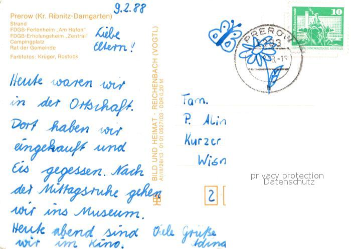 72961064 alte Postkarte Prerow Ostseebad Strand FDGB Ferienheim Erholungsheim Campingplatz Rat der Gemeinde postalisch gelaufen Erhaltung siehe scans [FriedD77] KatCode: 11110013057068