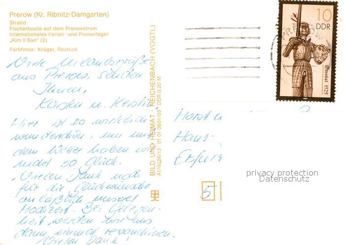73029909 alte Postkarte Prerow Ostseebad Strand Fischerboote Ferien Pionierlager Kim II Sun postalisch gelaufen Erhaltung siehe scans [KathaD81] KatCode: 11110013057068