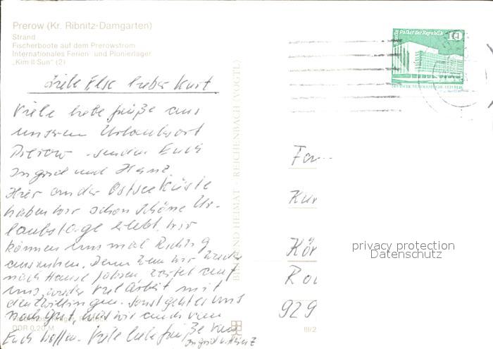 72350047 alte Postkarte Prerow Ostseebad Strand Fischerboote Internationales Ferien Pionierlager Kim II Sun postalisch gelaufen Erhaltung siehe scans KatCode: 11110013057068