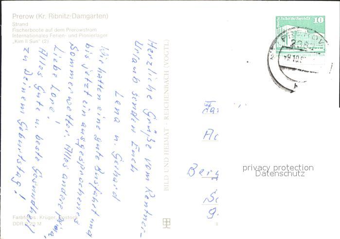 72382544 alte Postkarte Prerow Ostseebad Strand Fischerboote Prerowstrom Internationales Ferien- Pionierlager Kim II Sun postalisch gelaufen Erhaltung siehe scans KatCode: 11110013057068