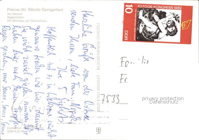 72123485 alte Postkarte Prerow Ostseebad Strand Hafen Milchar am Duenenhaus postalisch gelaufen Erhaltung siehe scans KatCode: 11110013057068