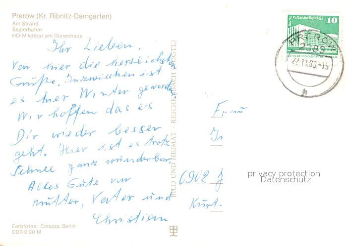 73062247 alte Postkarte Prerow Ostseebad Strand Seglerhafen HO Milchbar am Duenenhaus postalisch gelaufen Erhaltung siehe scans [FriedD77] KatCode: 11110013057068