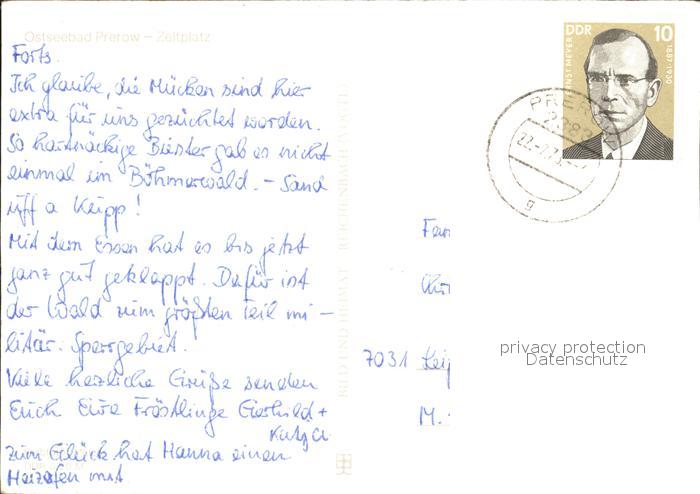 72035356 alte Postkarte Prerow Ostseebad Zeltplatz postalisch gelaufen Erhaltung siehe scans KatCode: 11110013057068