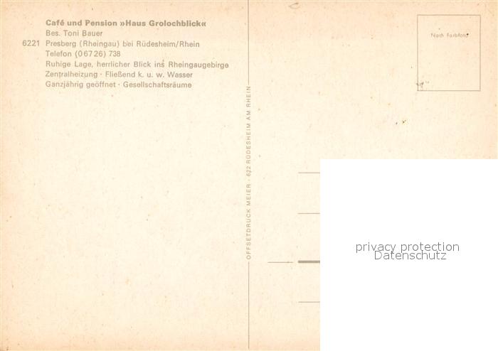 73615331 Presberg Rheingau Cafe und Pension Haus Grolochblick Gaststube postalisch nicht gelaufen Erhaltung siehe scans [WerneD78] KatCode: 11110006439013