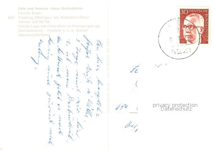 73844637 Presberg Rheingau Cafe und Pension Haus Grolochblick Gaststube postalisch nicht gelaufen Erhaltung siehe scans [FriedD77] KatCode: 11110006439013