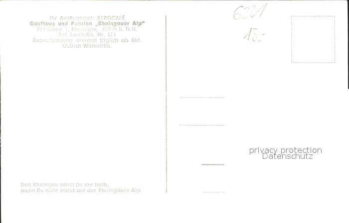 72095719 Presberg Rheingau Gasthaus Pension Rheingauer Alp postalisch nicht gelaufen Erhaltung siehe scans KatCode: 11110006439013