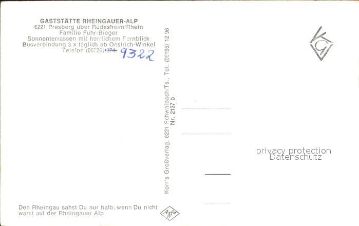 72096184 Presberg Rheingau Gaststaette Rheingauer Alb postalisch nicht gelaufen Erhaltung siehe scans KatCode: 11110006439013