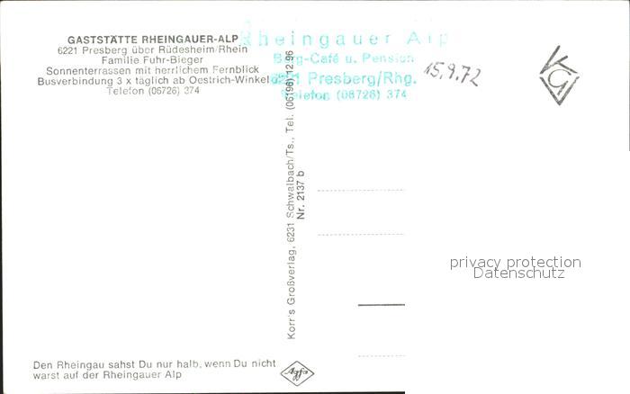 72096219 Presberg Rheingau Gaststaette Rheingauer Alp postalisch nicht gelaufen Erhaltung siehe scans KatCode: 11110006439013
