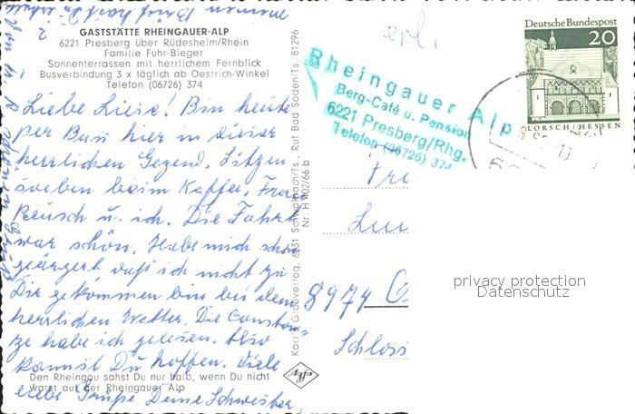 72093408 alte Postkarte Presberg Rheingau Gaststaette Rheingauer Alp postalisch gelaufen Erhaltung siehe scans KatCode: 11110006439013
