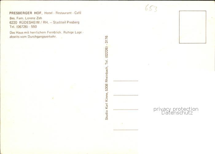 72605491 Presberg Rheingau Presberger Hof Hotel Restaurant Cafe postalisch nicht gelaufen Erhaltung siehe scans [FriedD77] KatCode: 11110006439013