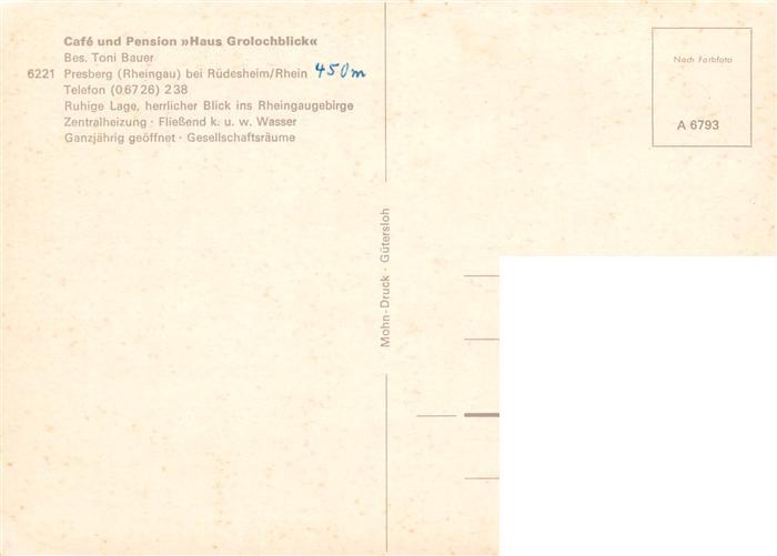 73935943 Presberg Rheingau Ruedesheim Cafe Pension Haus Grolochblick postalisch nicht gelaufen Erhaltung siehe scans [FriedD77] KatCode: 11110006439013