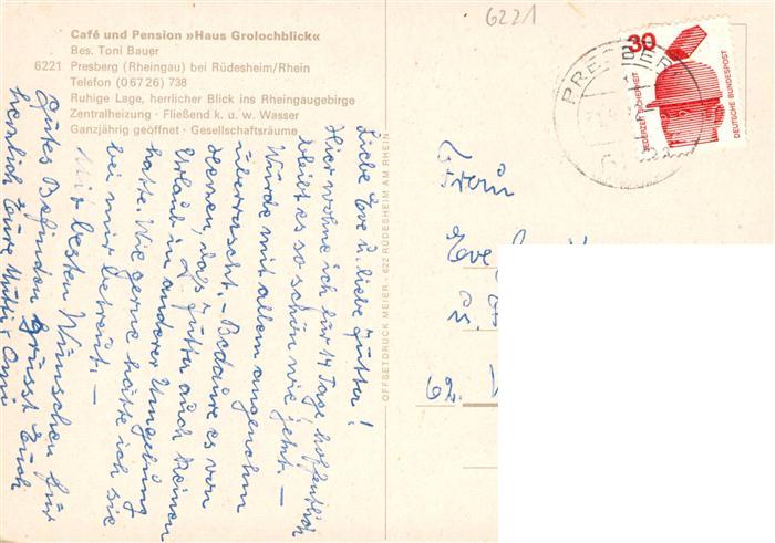 73935842 alte Postkarte Presberg Rheingau Ruedesheim Cafe Pension Haus Grolochblick Gastraum postalisch gelaufen Erhaltung siehe scans [WerneD78] KatCode: 11110006439013