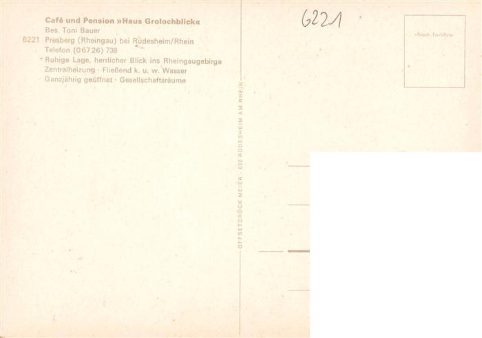 73935962 Presberg Rheingau Ruedesheim Cafe Pension Haus Grolochblick postalisch nicht gelaufen Erhaltung siehe scans [FriedD77] KatCode: 11110006439013