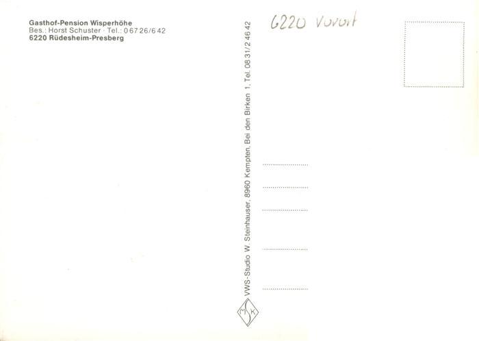 73936538 Presberg Rheingau Ruedesheim Gasthof Pension Wisperhoehe postalisch nicht gelaufen Erhaltung siehe scans [FriedD77] KatCode: 11110006439013