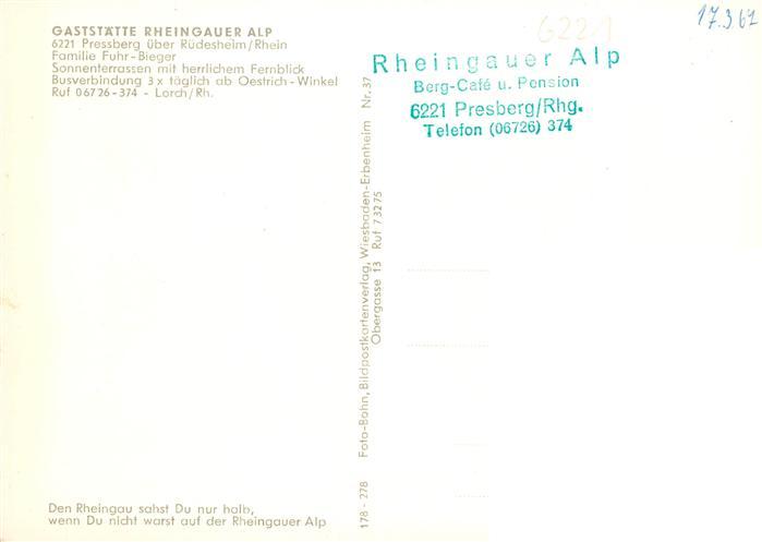 73935858 Presberg Rheingau Ruedesheim Gaststaette Rheingauer Alp Gastraum Ausblick postalisch nicht gelaufen Erhaltung siehe scans [WerneD78] KatCode: 11110006439013