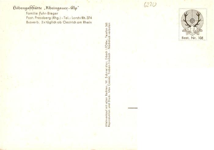 73935996 Presberg Rheingau Ruedesheim Hoehen Gaststaette Rheingauer Alp im Rotwildgebiet Kammerforst postalisch nicht gelaufen Erhaltung siehe scans [FriedD77] KatCode: 11110006439013