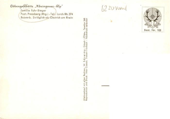 73936540 Presberg Rheingau Ruedesheim Hoehen Gaststaette Rheingaur Alp Illustration postalisch nicht gelaufen Erhaltung siehe scans [FriedD77] KatCode: 11110006439013