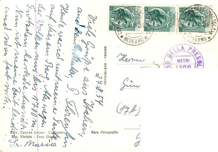 73899570 old postcard Presolana Bergamo Lombardia IT Castione delle Presolana Stazione Climatica Colonia Dalmine e Massiocio della Presolana postalisch gelaufen Erhaltung siehe scans [WerneD78] KatCode: 11240