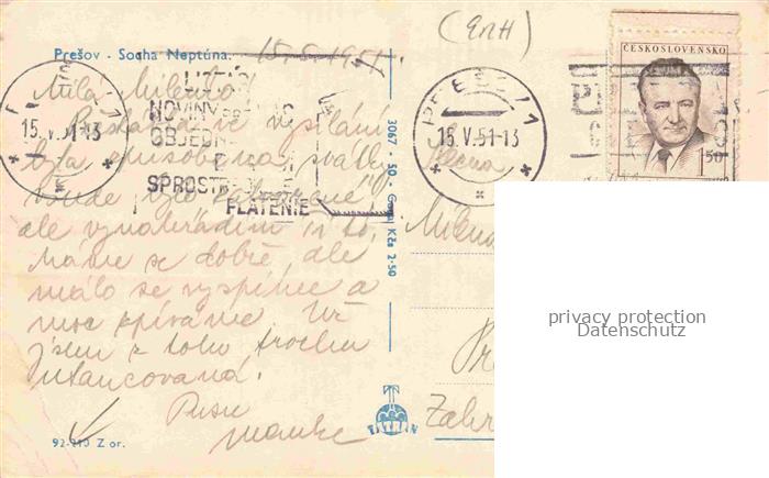 74032570 old postcard PRESOV Eperjes Eperies SK Socha Neptuna postalisch gelaufen Erhaltung siehe scans [WerneD78] KatCode: 11490