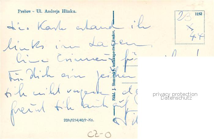 73849743 Presov Eperjes SK Ul Andreja Hlinku postalisch nicht gelaufen Erhaltung siehe scans [WerneD78] Wern Katcode 11490