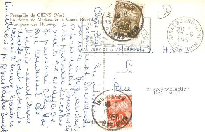 13484634 carte postale Presqu Ile-de-Giens Pointe de Madame Grand Ribaud vue prise des Hotels Cote d Azur postalisch gelaufen Erhaltung siehe scans [FriedD77] KatCode: 11170083283069