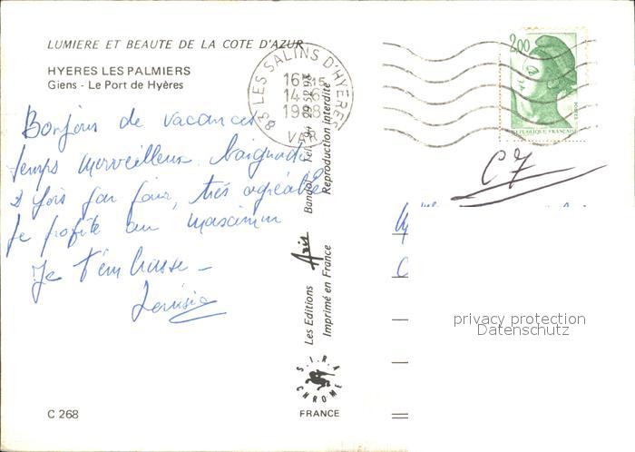 12231194 carte postale Presqu ile-de-Giens Port de Hyeres Hafen Strand Segelboot postalisch gelaufen Erhaltung siehe scans KatCode: 11170083283069