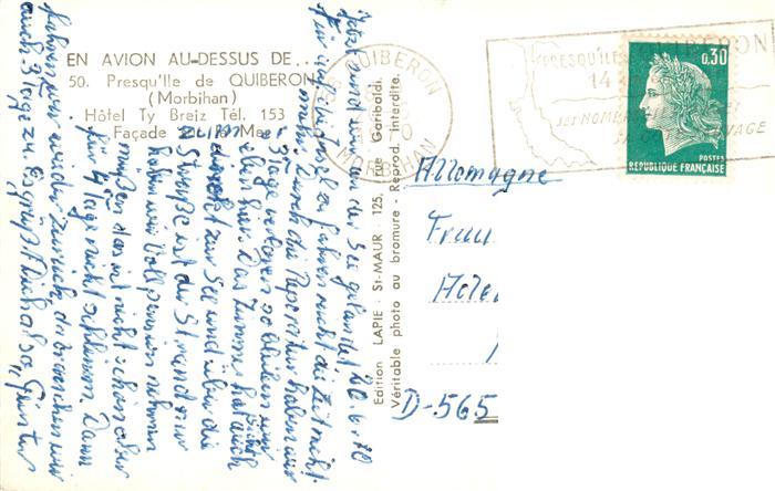 13885721 Presqu Ile de Quiberon 35 Hotel Ty Breiz Facade postalisch gelaufen Erhaltung siehe scans [FriedD77] carte postale Frie Katcode 11170035335238
