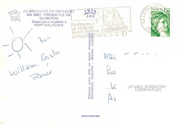 12687372 carte postale Presqu Ile de Quiberon Depart pour la peche a Port Haliguen Hafen Fischerboot postalisch gelaufen Erhaltung siehe scans [FriedD77] KatCode: 11170035335238