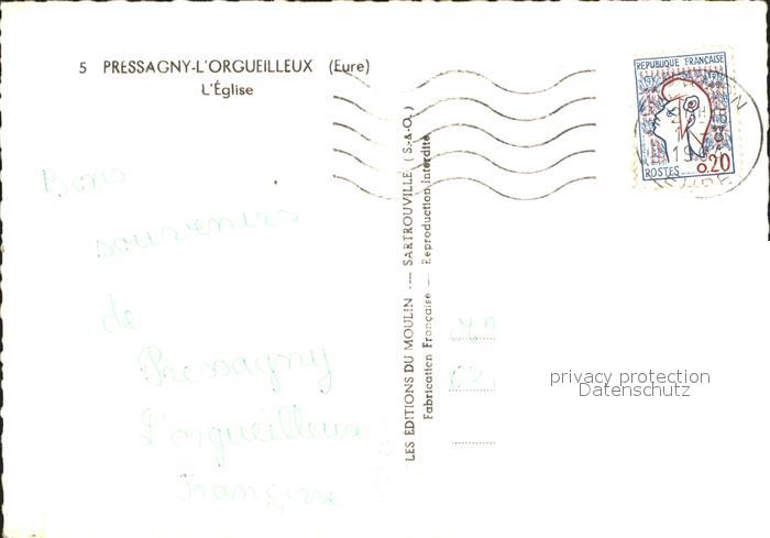 11903366 carte postale Pressagny-l Orgueilleux Eglise postalisch gelaufen Erhaltung siehe scans KatCode: 11170027127477