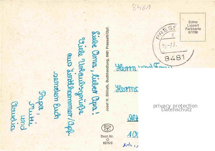 74049386 alte Postkarte Pressath Ortsansicht mit Kirche Panorama postalisch gelaufen Erhaltung siehe scans [FriedD77] KatCode: 11110009374149