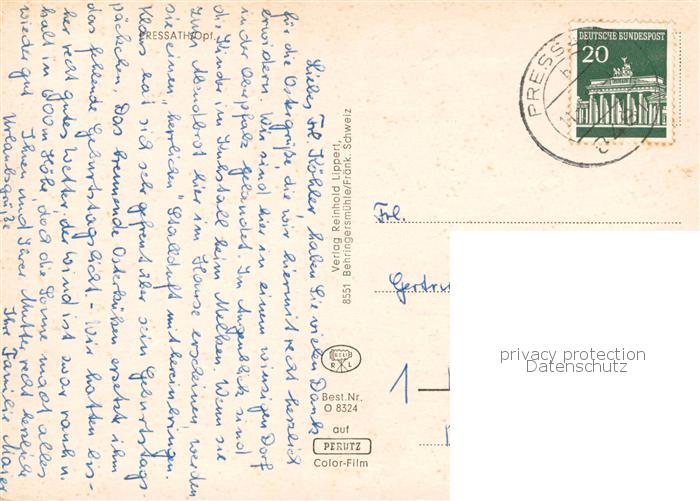 73866204 alte Postkarte Pressath Ortsansicht mit Kirche postalisch gelaufen Erhaltung siehe scans [FriedD77] KatCode: 11110009374149